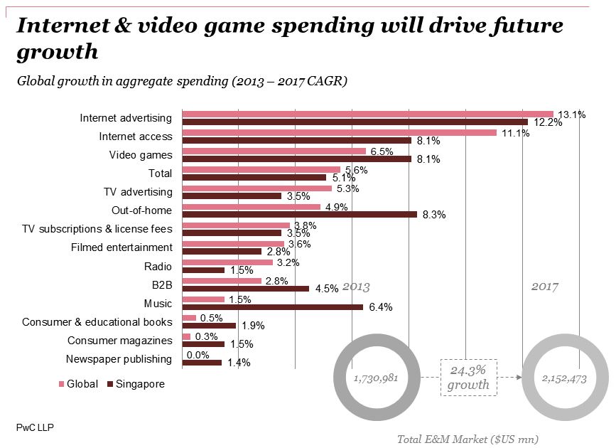 Estimated for 2014, online and mobile gaming will become the main driver of industry revenue for the first time, with mobile advertising to overtake classified in internet advertising categories by 2015.