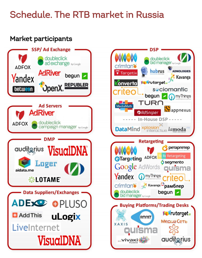 The DSP market in Russia is represented by several major local players, some foreign platforms and a large number of small buyers.